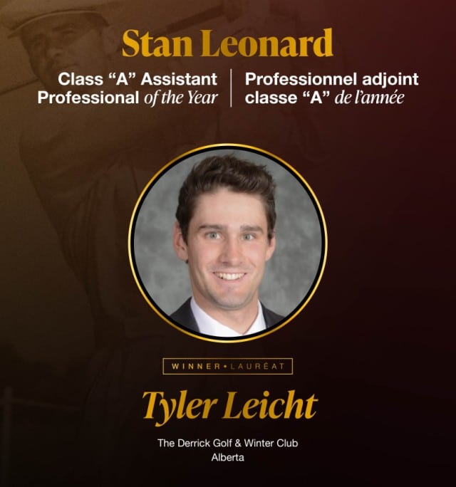 Tyler Leicht has been named the 2025 PGA of Canada Class “A” Assistant Professional of the Year, recognizing his outstanding leadership, professionalism, and wide-ranging impact across club operations, coaching, education, and community engagement.
